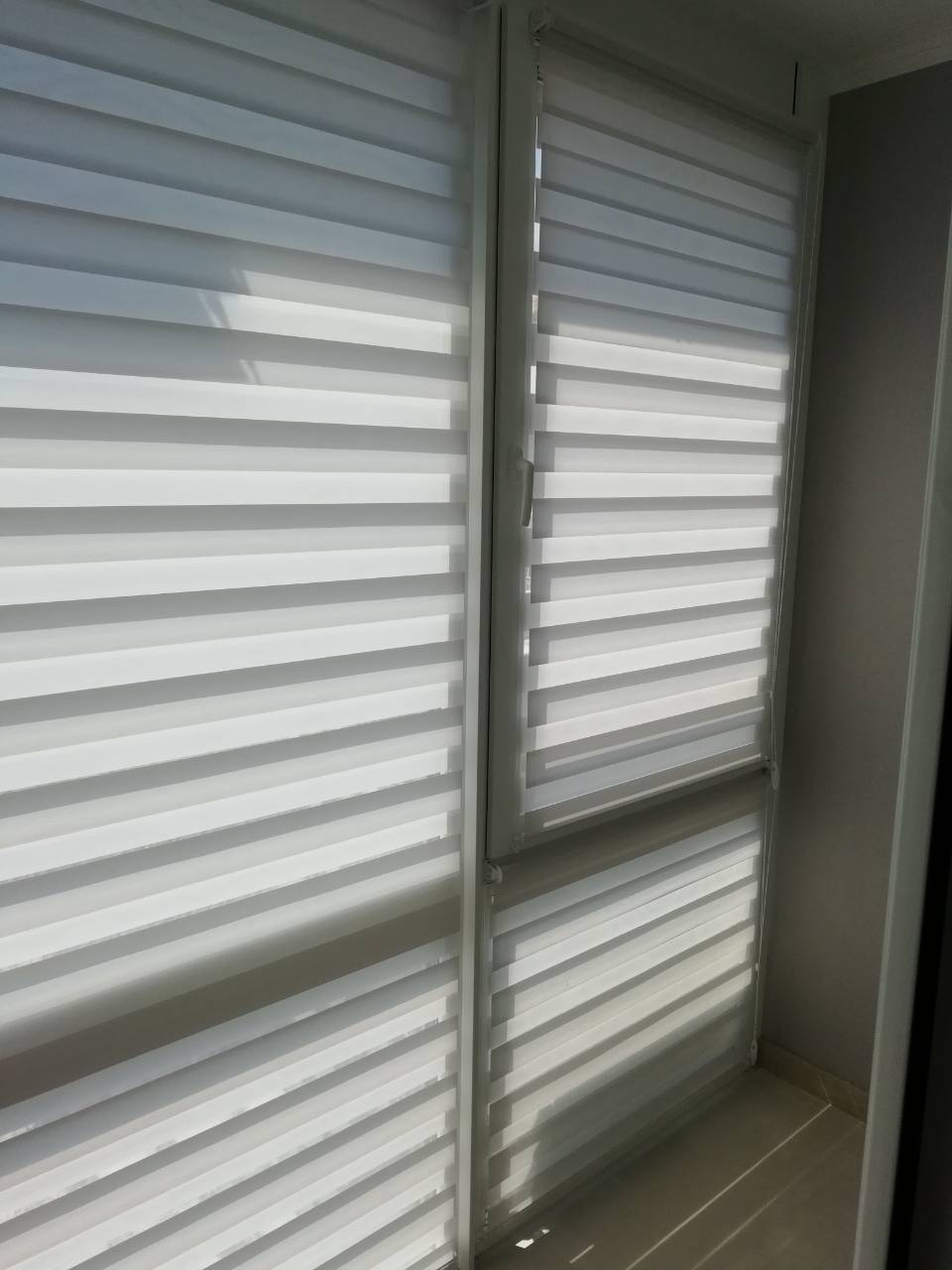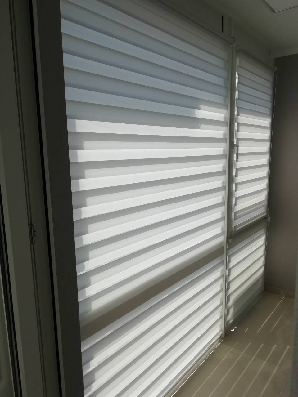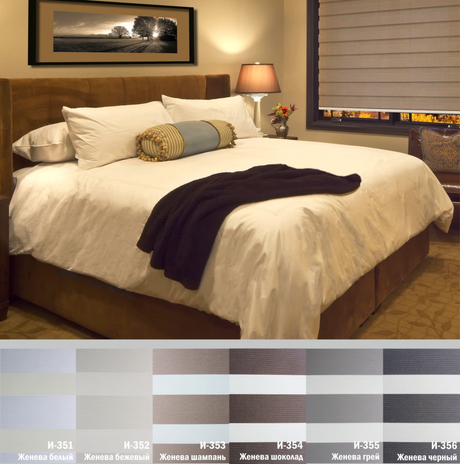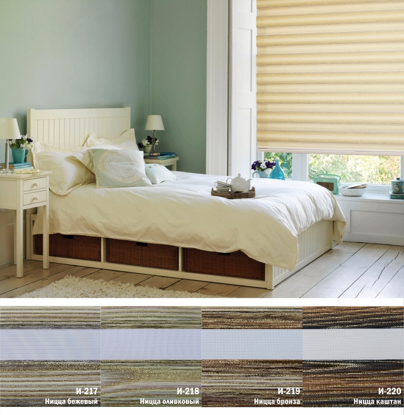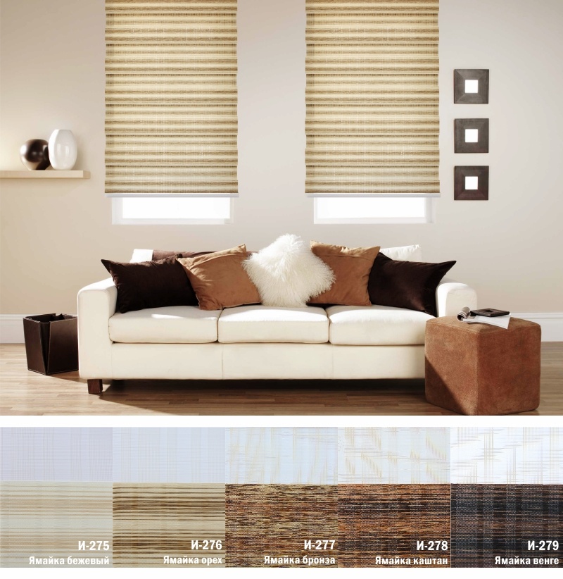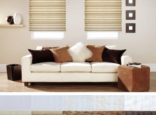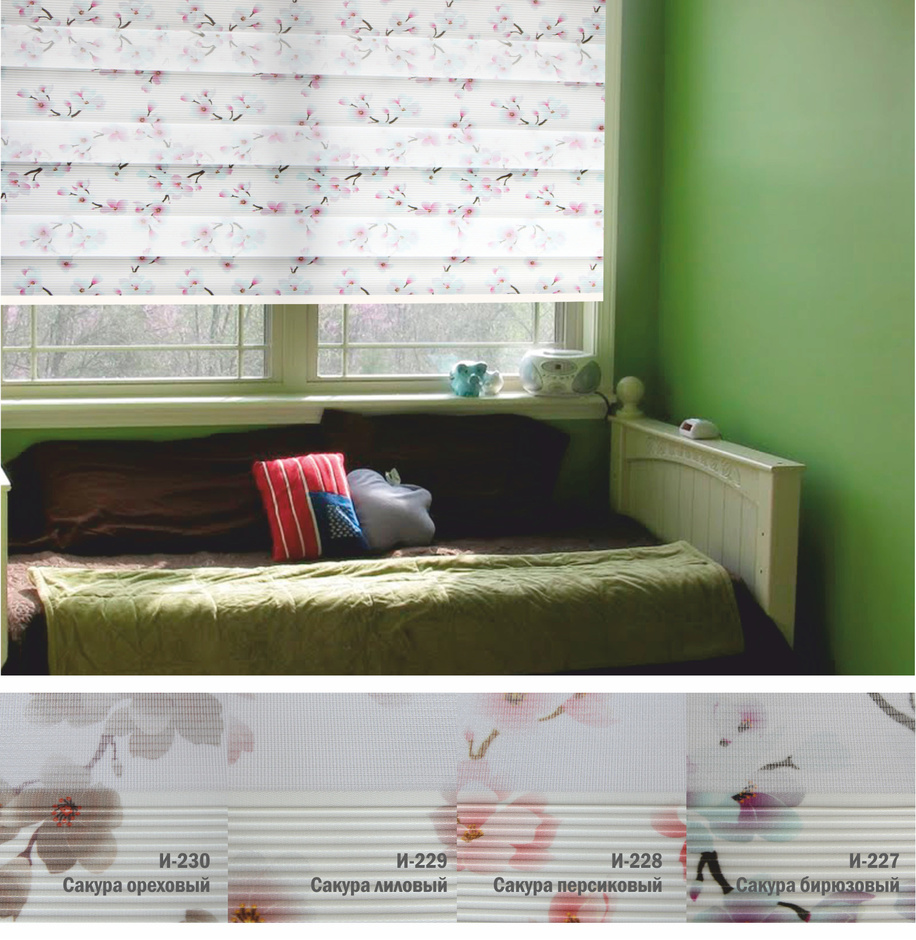 Подвійне полотно складається з горизонтальних смуг, що чергуються. Темні смуги виготовляються із щільних непрозорих матеріалів різних кольорів, а світлі – із легкої сітчастої тканини. Зміна режиму освітлення відбувається за рахунок усунення цих смуг. Штори працюють у трьох режимах: