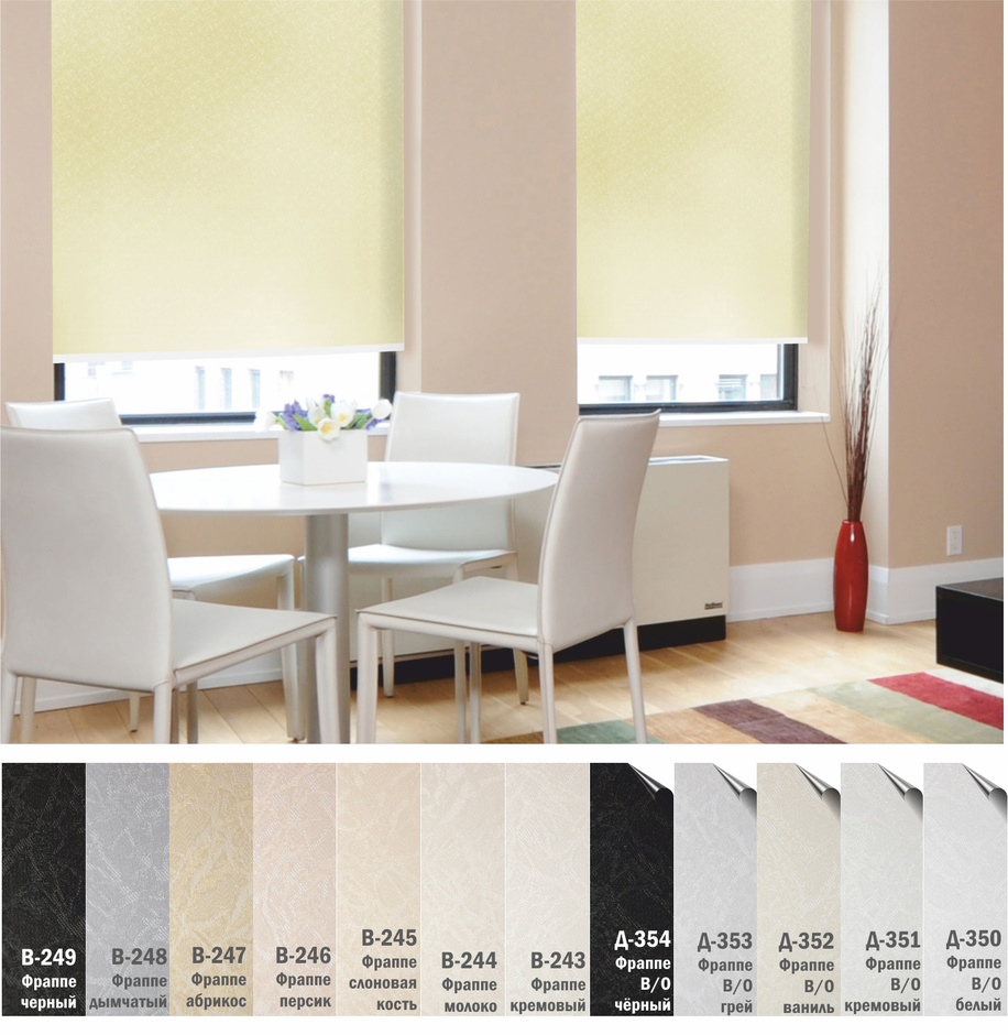 Рулонні штори гармонують як із сучасним, так і з класичним інтер'єром. Суворі кольори підійдуть для офісних приміщень, барвисті варіанти перетворять дитячу кімнату, ніжні тони гармонійно впишуться в інтер'єр спальні. Якщо ви хочете купити рулонні штори в інтернет-магазині, наш майстер приїде до вас особисто і продемонструє зразки тканин. За такого підходу ймовірність помилкового вибору виключена. Щоб замовити рулонні штори, зверніться до нашого менеджера та оформіть заявку на виклик майстра.
