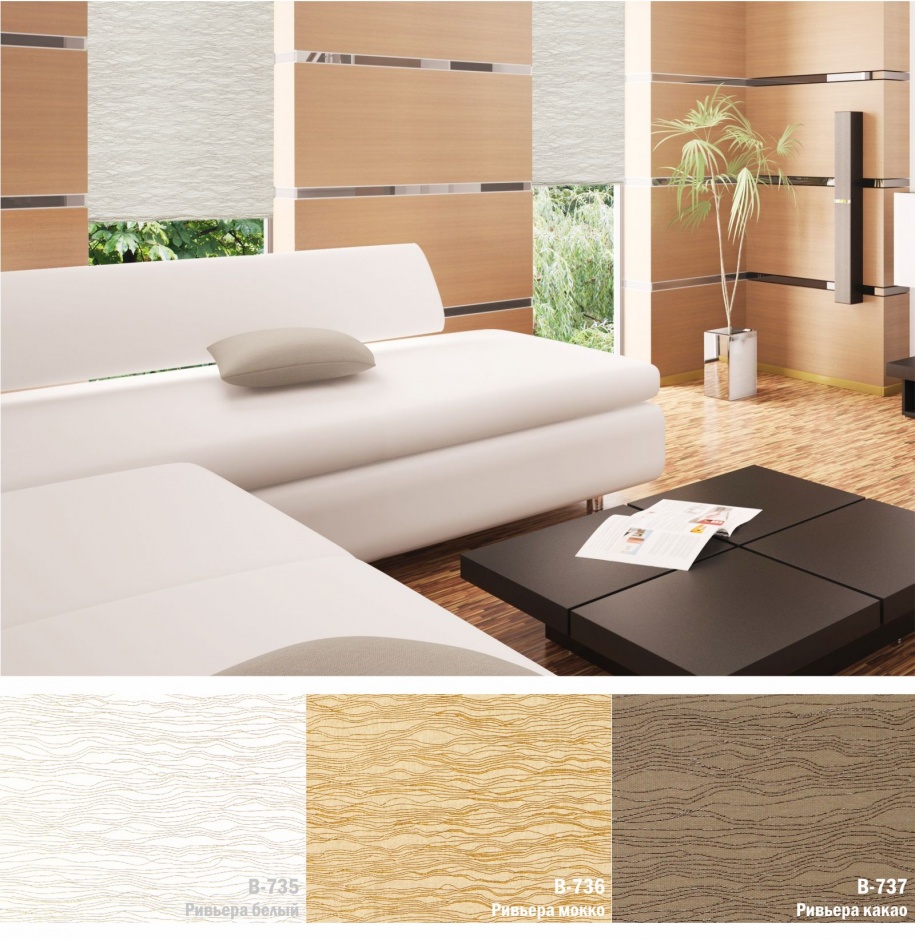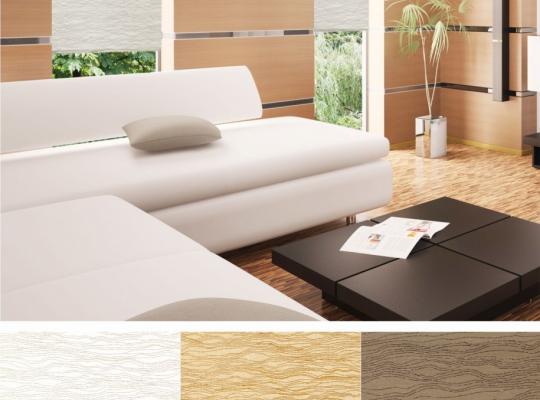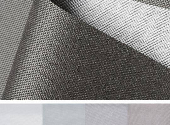 Продукція виготовляється з високоякісних дизайнерських тканин JM Technical Textiles (Німеччина). Асортимент кольорів та текстур щорічно оновлюється, колекція поповнюється актуальними, модними тканинами. Матеріали не вбирають пил і забруднення, при необхідності легко чистяться і мають антистатичний ефект.